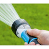 Zestaw zawiera: zraszacz prosty wielofunkcyjny, szybkozłącze stop, szybkozłącze przelot oraz przyłącze kranowe. Zraszacz posiada ergonomiczny kształt, wygodną rączką oraz prysznicową końcówkę, które zapewniają komfort użytkowania. Posiada bezstopniową regulacją mocy strumienia: od punktowego podlewania, przez delikatną mgiełkę do strumienia prysznicowego. Zapewnia równomierne zraszanie trawnika i innych elementów ogrodu.