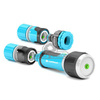 Przyłącze kranowe posiada wymienne gwinty, które możemy dopasować do 3 średnic kranu: 1/2, 3/4 i 1 cala. W ofercie dostępny jest taki sam zestaw ze złączami o średnicy 1/2 cala.