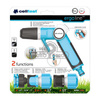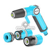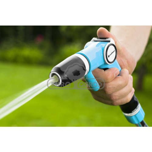 Zestaw zawiera: zraszacz pistoletowy prosty, szybkozłącze stop, szybkozłącze przelot oraz przyłącze kranowe. Zraszacz posiada ergonomiczny kształt i wygodną rączką pistoletową, które zapewniają komfort użytkowania. Posiada bezstopniową i intuicyjną regulacją mocy strumienia: od punktowego podlewania do delikatnej mgiełki. Zapewnia równomierne zraszanie trawnika i innych elementów ogrodu. Wyposażony jest ponadto w uchwyt do wygodnego zawieszenia na haczyku. Takie rozwiązanie pomoże w zachowaniu porządku w warsztacie ogrodnika.