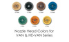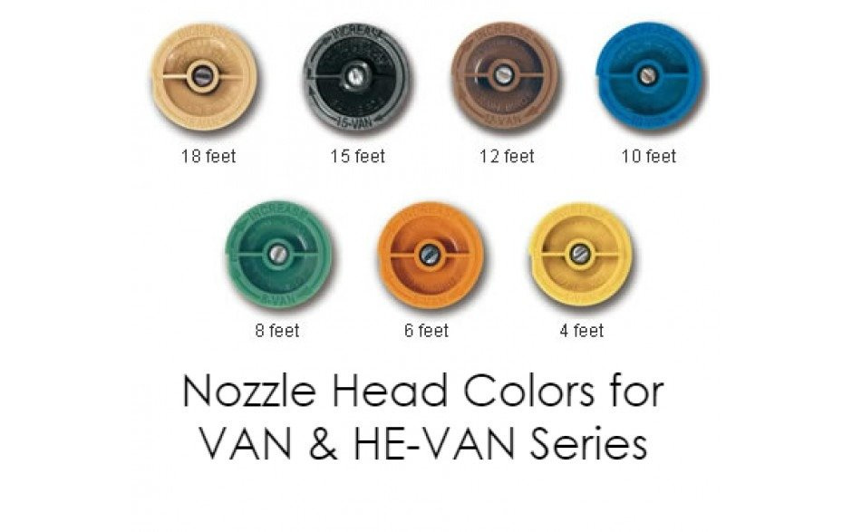 W serię dysz VAN wchodzą modele o sektorze zraszania do 330 stopni – 4VAN, 5VAN, 8VAN oraz o sektorze do 360 stopni (pełne koło) – 10VAM, 12VAN, 15VAN i 18VAN. Poszczególne modele różnią się od siebie promieniem strumienia zraszania.
