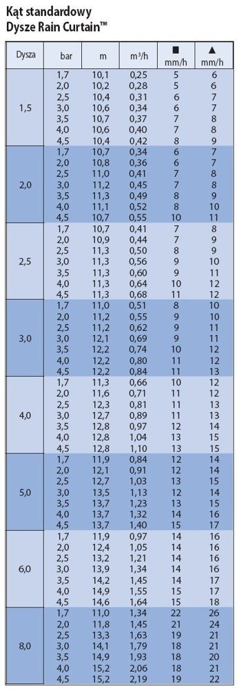 Zasięg (promień) zraszania (m): | 7,6 - 15,2 |