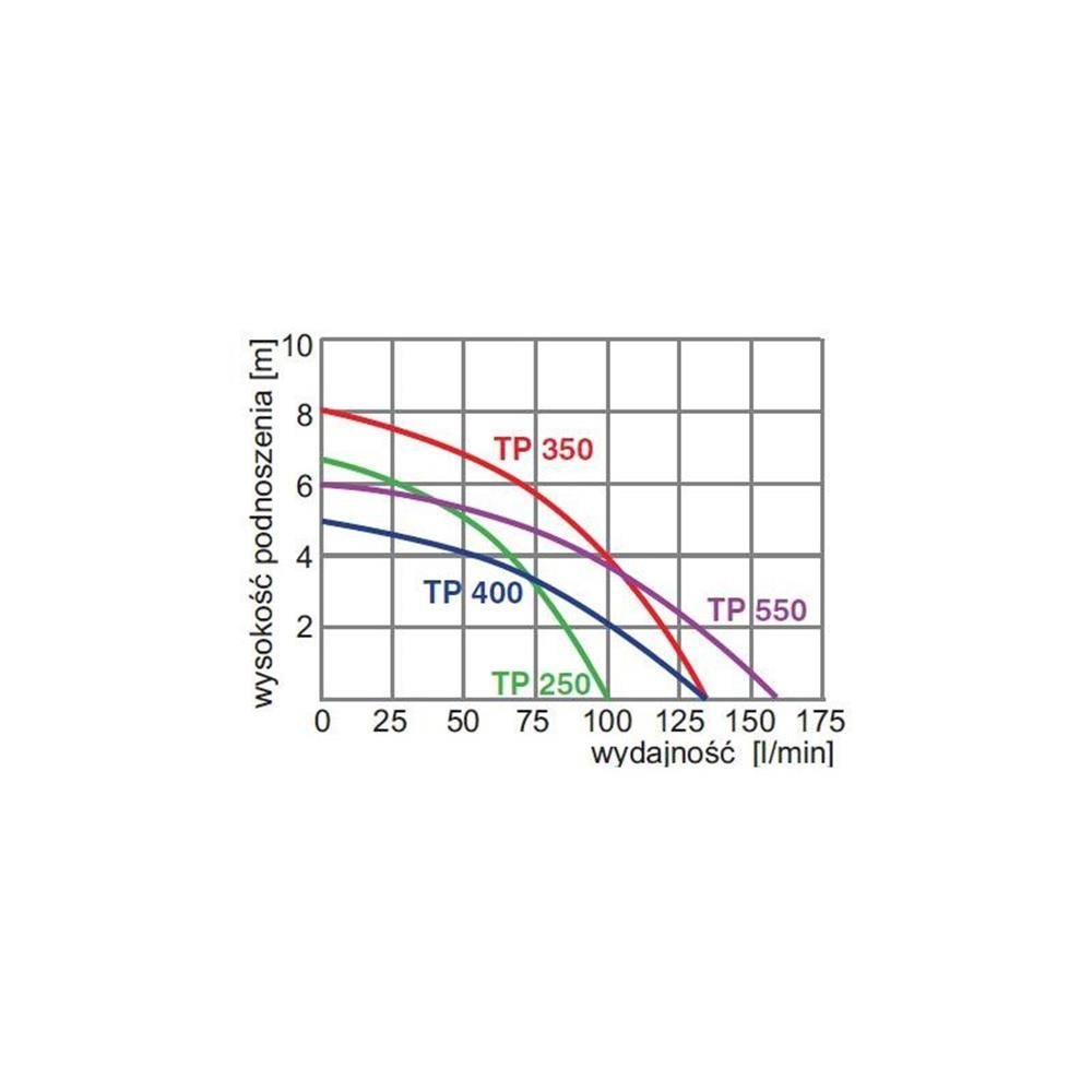 wydajność wynosi 130 l/minutę, a maksymalna wysokość podnoszenia