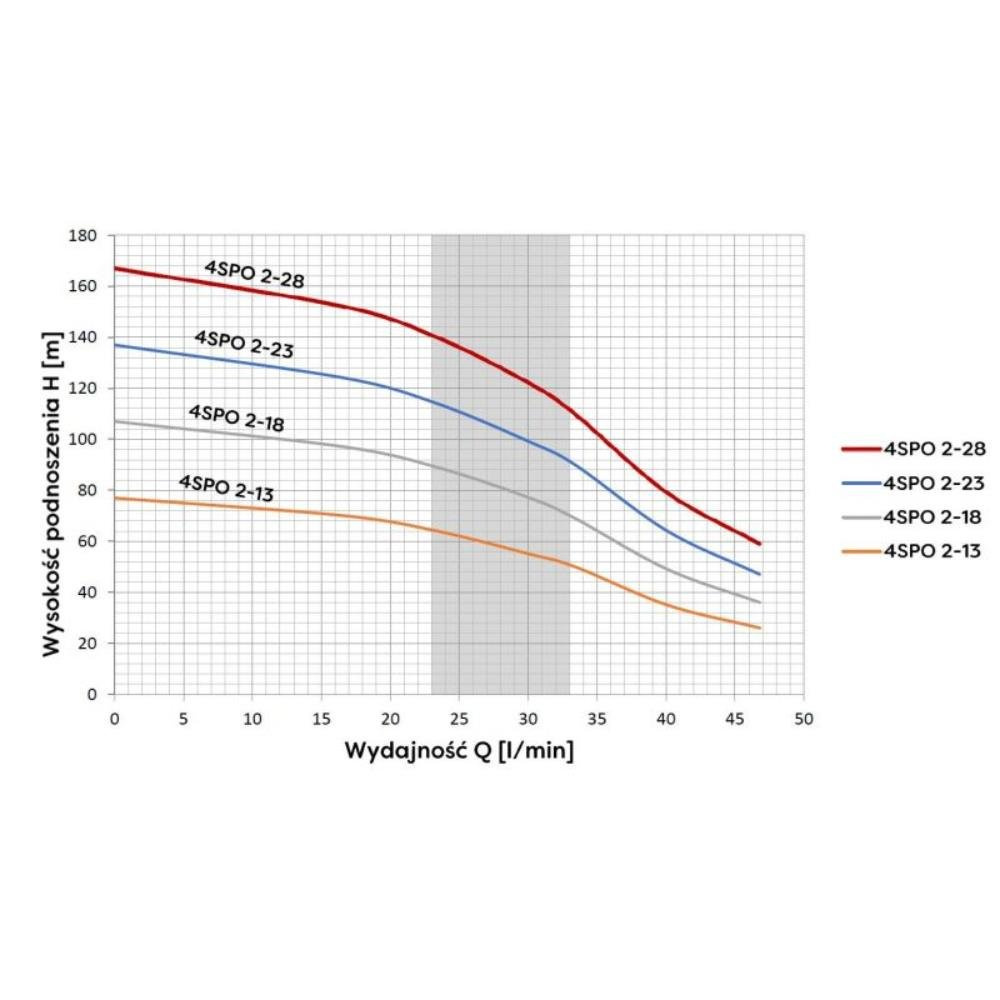 Maksymalna wydajność pracy SPO 2-13 wynosi 46 l/minutę, a max. wysokość