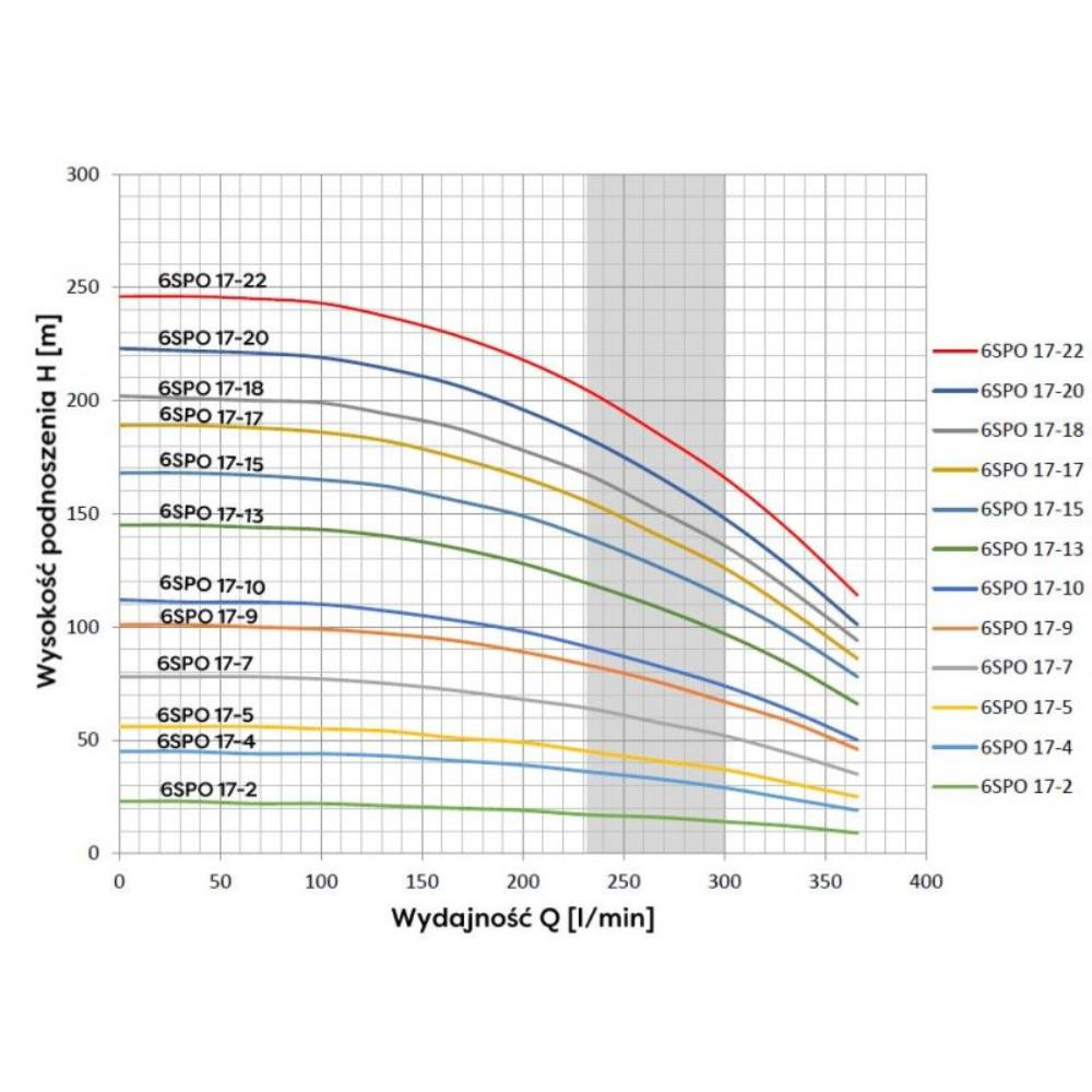 Maksymalna wysokość podnoszenia SPO 17-13 wynosi 145 m. Do pompy pasują