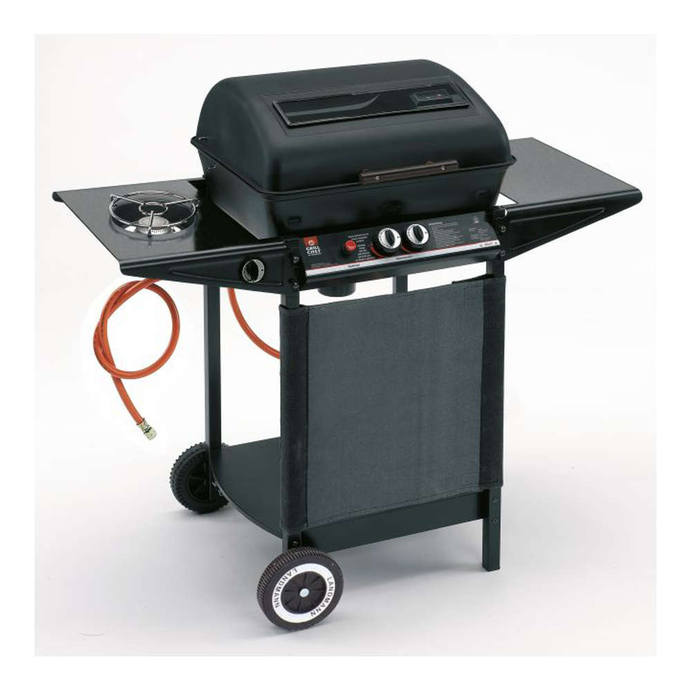 W pokrywie komory zamontowano termometr, dzięki któremu możemy kontrolować temperaturę grillowania. Pod palnikami znajduje się misa na ściekający tłuszcz, którą możemy łatwo opróżnić i wyczyścić. W zamykanej dolnej szafce możemy sprytnie schować butlę gazową. Szafla ma uchwyty ze stali szlachetnej odpornej na korozję. Do zestawu dołączony jest wąż oraz reduktor ciśnienia.