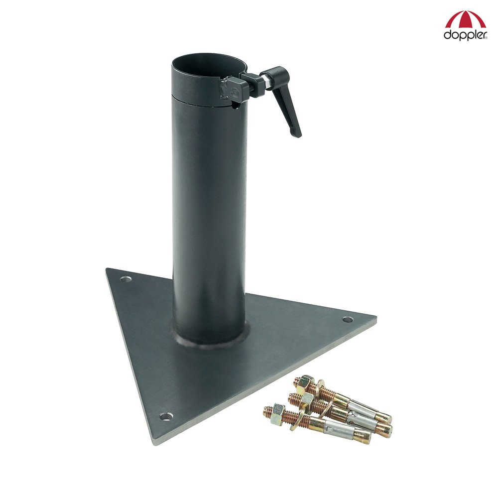 Płyta do montażu przeznaczona jest do twardego podłoża. Niektórych z nas cieszy chodzenie boso po trawie. Tym, którzy wolą relaksować się na tarasie lub patio i stąpać po drewnie czy betonie, proponujemy montaż parasola przy pomocy płyty.