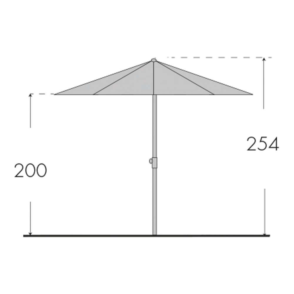 Maszt modelu Protect 340 ma średnicę 50 mm oraz 254 cm wysokości (200 cm pod parasolem). Parasol otwierany ręcznie ze wspomaganiem.