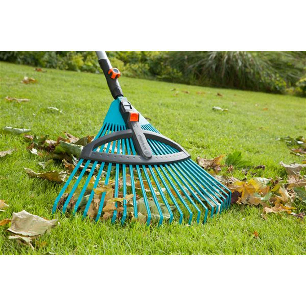 Wachlarzowe grabie z regulacją z linii narzędzi ogrodowych Combisystem marki Gardena. Grabie służą do dokładnego i wygodne grabienia liści, skoszonej trawy, ściółki i innych odpadów ogrodniczych. Wykonano je z bardzo wytrzymałego tworzywa sztucznego.