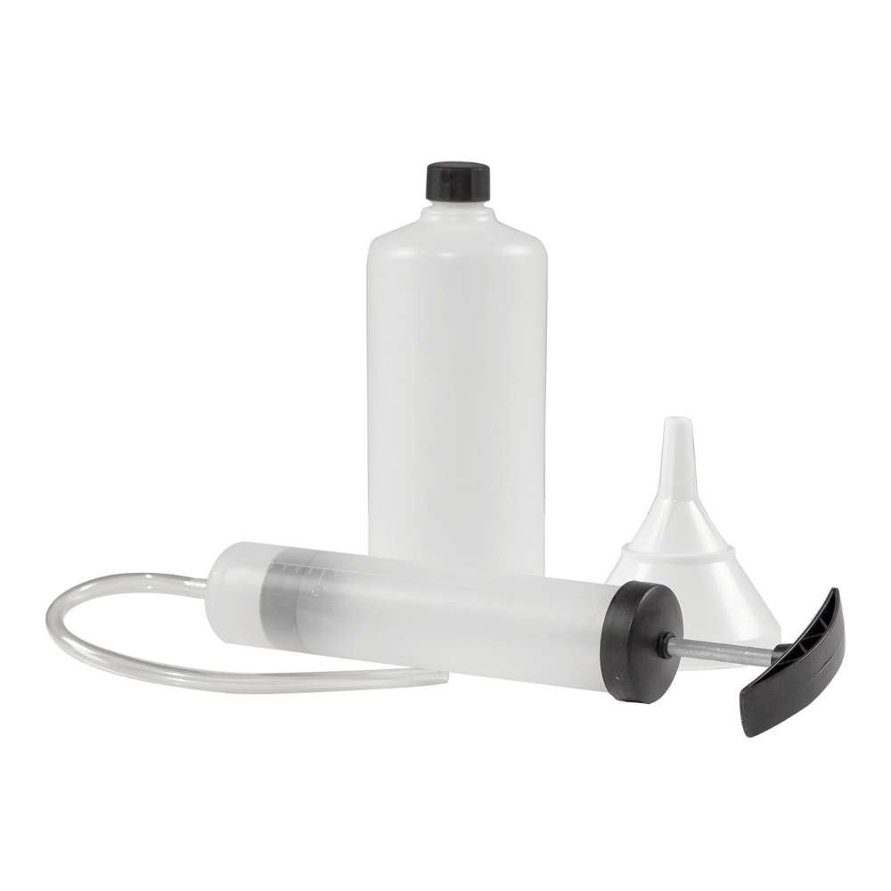 Zestaw zawiera: pojemnik na olej, lejek oraz strzykawkę z rurką. Dzięki niemu wymiana płynu w silniku odbędzie się łatwo, bezpiecznie i bez ryzyka ubrudzenia.