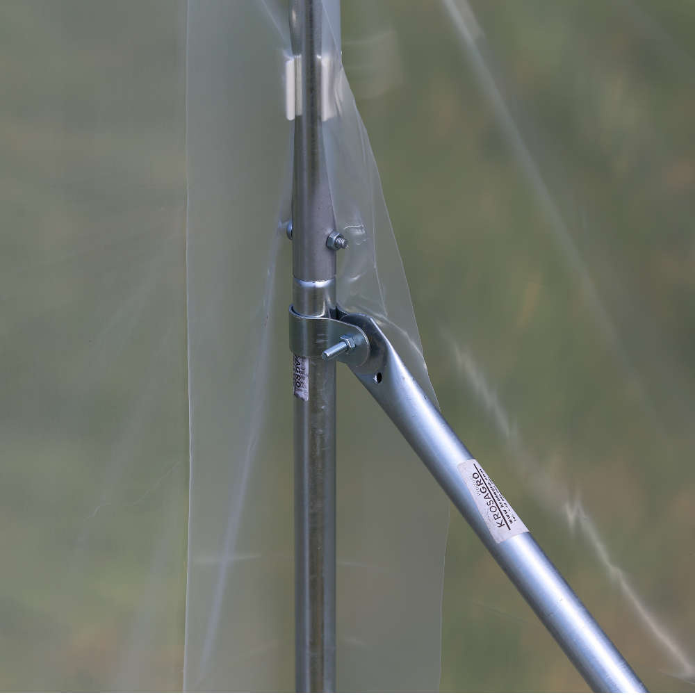 Tunel Hobby oparty jest o ramę złożoną z ocynkowanych stalowych profili o grubości 25 mm, które zabezpieczono przed korozją. Pałąki rozstawione są co 1,25 m. Pokrycie tunelu wykonano z folii PE UV2 (polietylenowa z gwarancją na 2 sezony użytkowania). Przezroczysta folia ma doskonałą przepuszczalność światła – aż 95%! Rośliny mają więc ciepły i przyjemny mikroklimat, który wydłuży okres ich wegetacji i wpłynie na większe plony. Dłuższe boki folii możemy przysypać ziemią i dodatkowo wzmocnić szczelność całego tunelu.