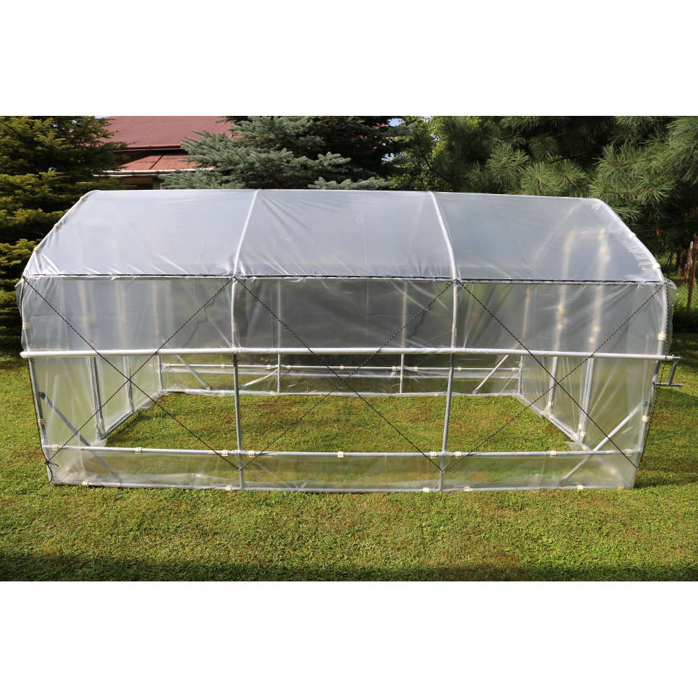 Tunel Multi ma powierzchnię 15m2, więc będzie w sam raz do niewielkiego ogrodu. Wysokość pomieszczenia 2,4 m pozwala na swobodne wykonywanie w nim niezbędnych prac. Konstrukcja opiera się na ramie wykonanej z solidnych profili wykonanych z ogniowo ocynkowanej stali. Tunel przeznaczony jest do samodzielnego montażu, a w zestawie zawarto wszystkie niezbędne elementy montażowe. Tunel możemy łatwo przenieść w inne miejsce, a na zimę nie musimy go demontować – wystarczy zdjąć folię i przechowywać w suchym miejscu. Pałąki rozstawione są co 1,25 m.