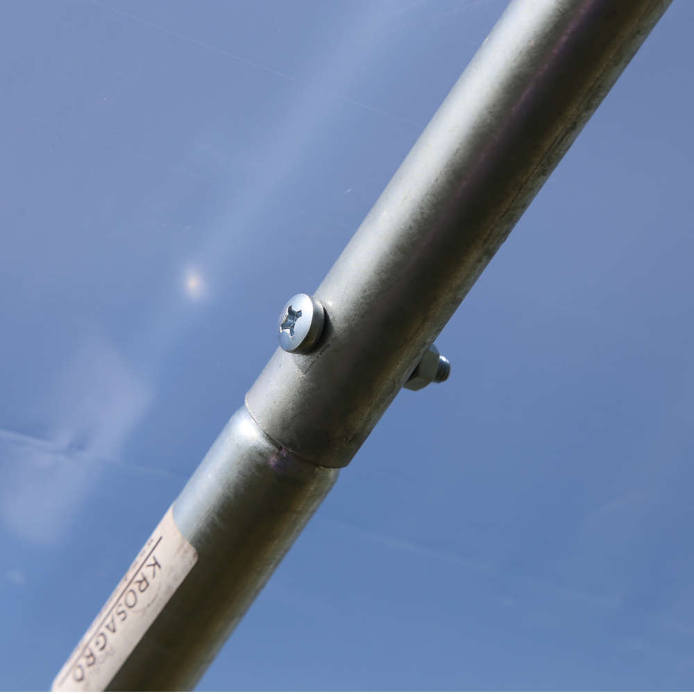 Konstrukcja tunelu Multi to rama złożona z solidnych profili wykonanych z ogniowo ocynkowanej stali. Profile mają średnicę 25 mm. Produkt przeznaczony jest do samodzielnego montażu i posiada dołączone wszystkie niezbędne elementy montażowe. Poszycie tunelu wykonano z mocnej, przezroczystej folii polietylenowej typu UV2 o bardzo wysokiej przepuszczalności światła aż 95%. Dłuższe boki folii możemy przysypać ziemią i dodatkowo uszczelnić cały tunel. Pałąki rozstawione są co 1,25 m. Na zimę nie musimy demontować tunelu, a wystarczy tylko zdjąć i przechować folię w suchym miejscu do nowego wiosennego sezonu.