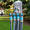 Rozdzielacz poczwórny Cellfast Ideal Line 52-240N umożliwia podłączenie jednocześnie czterech urządzeń nawadniających do jednego ujścia kranowego. Przepływ można regulować w każdym wyjściu jednocześnie. Mechanizm ten zapewnia płynną regulacją i możliwość całkowitego zamknięcia strumienia. Używając odpowiednich złączy redukcyjnych istnieje możliwość połączenia rozdzielacza z wężami o różnych średnicach. Gwint rozdzielacza będzie pasował do kranu o średnicy zarówno 3/4, jak i 1 cala.