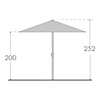 Na stelaż modelu Basic Lift 250x200 składają się dwuczęściowy maszt i zbudowana z 6 szprych czasza. Maszt jest składany i ma średnicę 34/37mm. Wysokość konstrukcji pod parasolem to 200cm. Budowa masztu pozwala na nachylenie czaszy tak, aby dostosować pozycję parasola do kąta padania promieni słonecznych. Dzięki temu parasol efektywnie chroni nas o każdej porze dnia. Konstrukcja wyposażona jest w korbkę, dzięki której rozłożymy i złożymy parasol.