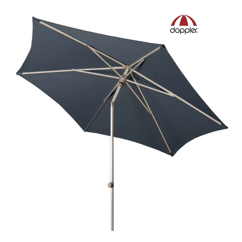 Niebieski parasol ogrodowy Perfect Easy 310, o okrągłym dachu. Model solidny, praktyczny i efektowny. Pochodzi z linii Sunline Alu, cenionej na rynku marki Doppler. Firma ma prawie 70 lat doświadczenie, co pozwala idealnie dostosować ofertę do wymagań i potrzeb klientów. Ten parasol doskonale sprawdzi się na tarasie, większym balkonie lub w ogrodzie. Model dostępny jest w szerokiej gamie kolorów do wyboru. Coś dla siebie znajdą zarówno miłośnicy naturalnych barw, jak i entuzjaści energetycznych żywych kolorów.