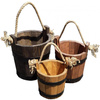 Donica została wykonana z drewna sosnowego, a okucia zostały wykonane z ocynkowanej stali. Donica ma kształt okręgu- jej średnica wynosi 30 cm, a wysokość 25/30 cm. Jej pojemność to 10 l. Donica posiada sznurek, który dodaje charakteru, ale również praktyczności- donice możemy powiesić np. na werandzie. Waga donicy wynosi 2,5 kg.