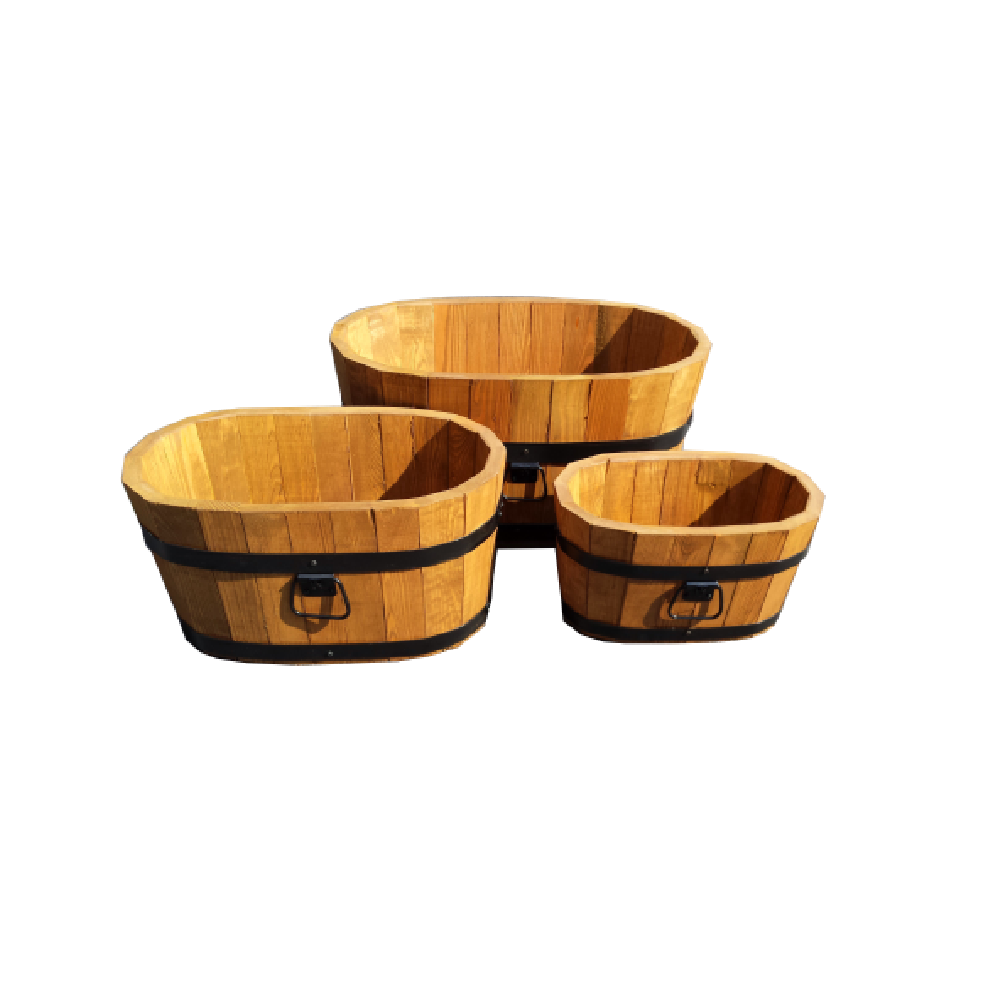 a okucia zostały wykonane z ocynkowanej stali. Donica ma kształt owalny- jej wysokość wynosi 31 cm, szerokość 37 cm, a