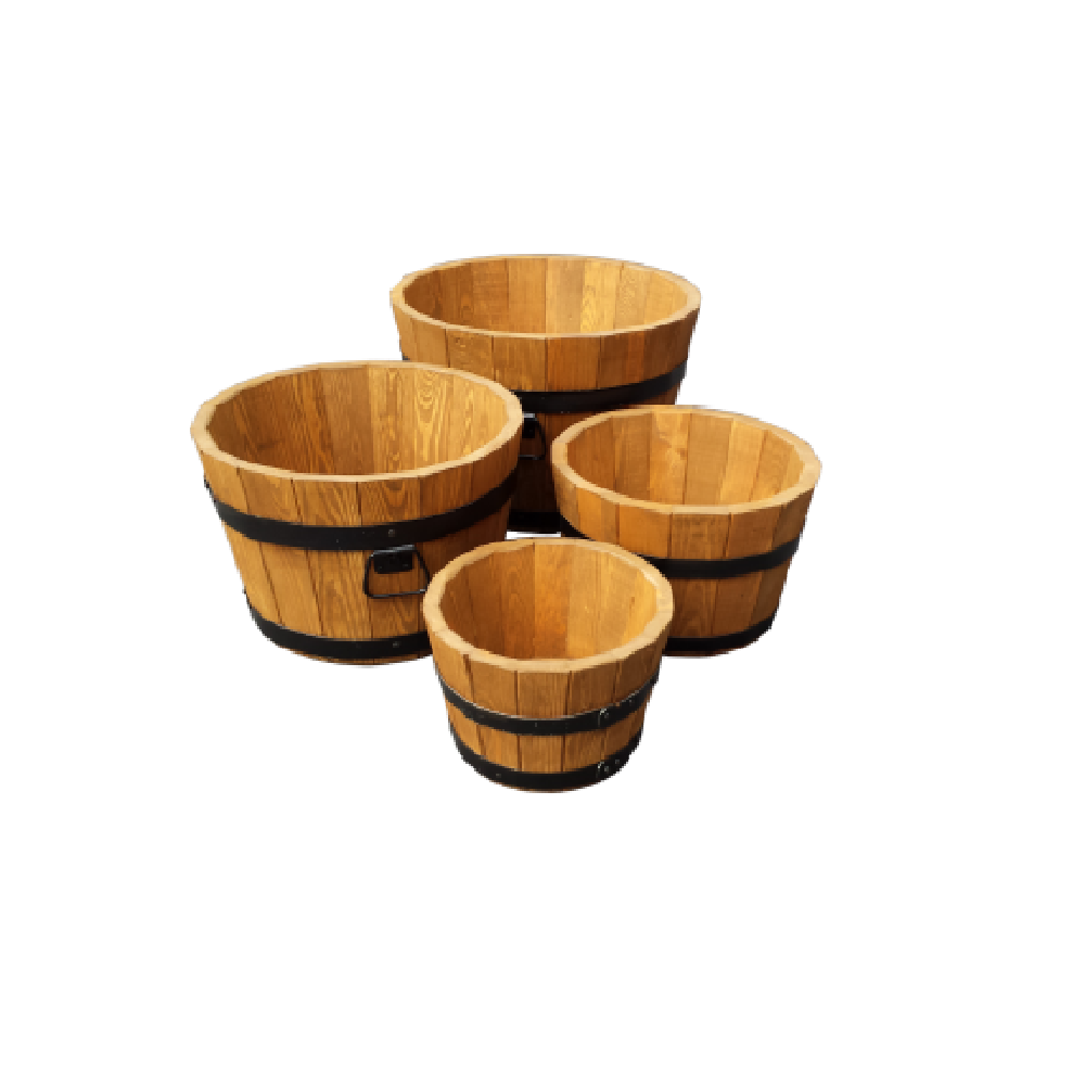 wykonana z drewna dębowego, a okucia zostały wykonane z ocynkowanej stali. Donica ma kształt okrągły- jej średnica to 28 cm, a jej wysokość wynosi 17 cm. Pojemność donicy to aż 5,5