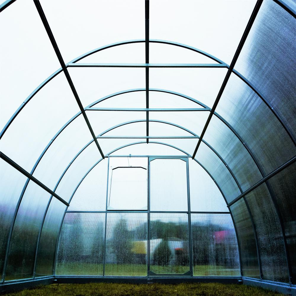 Szklarnia wyposażona została w dwie pary drzwi o szerokości 0,90 m i wysokości 2 m oraz w dwa okienka uchylne o wymiarach 0,90 x 0,95 m, dzięki którym możemy regulować temperaturę wewnątrz i wpuszczać świeże powietrze. Dzięki przęsłom rozstawionym w odległości co 0,97 m konstrukcja szklarni jest niezwykle solidna, posłuży nam z pewnością przez wiele lat.