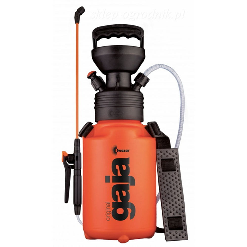 Opryskiwacz ciśnieniowy Gaja wyprodukowany przez markę Kwazar o pojemności 2 litrów. Wyposażony został w lancę o długości 32 cm. Jest to niezwykle funkcjonalne narzędzie wyposażony w niewielki, lecz bardzo mocny zbiornik ciśnieniowy- co jest jego największą zaletą. Jest niezwykle łatwy oraz wygodny w użytkowaniu. Posiada przezroczysty wskaźnik umieszczony wzdłuż skali pojemności, pozwalający na łatwe i szybkie określenie poziomu cieczy.