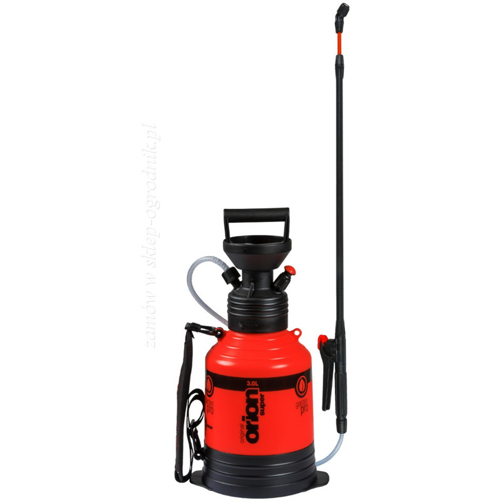 Opryskiwacz ciśnieniowy Orion wyprodukowany przez markę Kwazar o pojemności 3 litrów. Wyposażony został w lancę o płynnej regulacji długości od 0.6 m do 1.2m. Zawór bezpieczeństwa zapobiega nadmiernemu napompowaniu zbiornika, a co za tym idzie chroni go przed uszkodzeniem. Jest niezwykle łatwy oraz wygodny w użytkowaniu. Posiada również wysokiej jakości uszczelnienia oraz podstawę stabilizującą, które dodatkowo zwiększają bezpieczeństwo pracy.