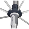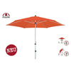 Czasza parasola została umieszczona na aluminiowym, dwuczęściowym kiju. Wyposażony został w funkcję otwierania korbką (Auto Tilt), co jest niezwykle wygodne. Oprócz wygodnego otwierania, mamy możliwość pochylenia czasy, dzięki czemu możemy ustawić pozycję parasola odpowiednio do kąta padania promieni słonecznych. Takie rozwiązania sprawią, że korzystanie z parasola jest bardzo łatwe i jednocześnie wygodne. Przedstawiany model może osiągnąć wysokość 251/221 cm (pod parasolem 200/170 cm).