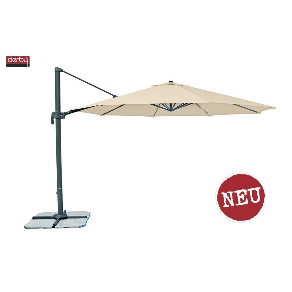 Czasza złożona z 8 aluminiowych szprych o średnicy 400 cm zapewnia odpowiednie podtrzymanie dla pokrycia. Zostało ono wykonane ze 100% poliestru wysokiej jakości, odpornego na działanie czynników zewnętrznych. Materiał zapewnia bardzo dobrą ochronę przeciwsłoneczną, dzięki odporności na słońce 5+ i filtrowi UV Faktor 50. Taka bariera przed słońcem gwarantuje, że relaks w upalne, wakacyjne dni nie skończy się poparzeniami. Okrycie czaszy odporne jest również na wodę, dlatego w razie zabrudzenia można je łatwo zdjąć i wyprać.