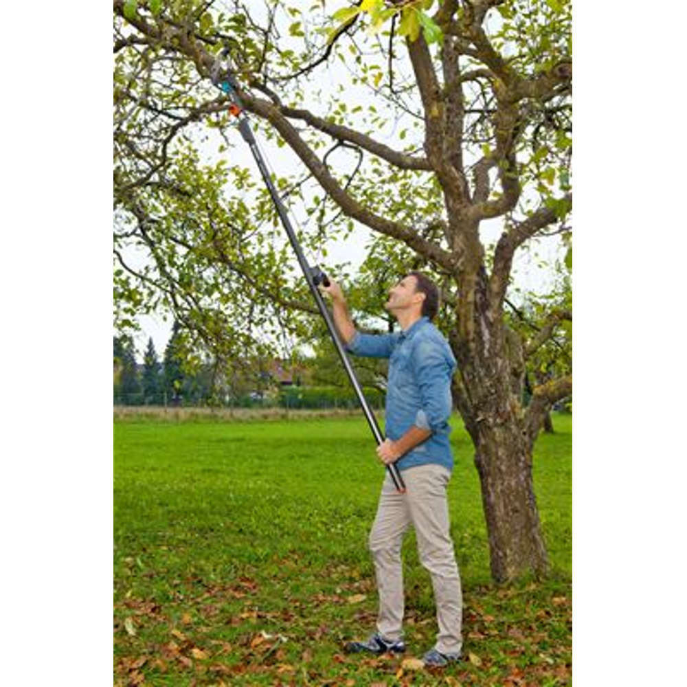 Trzonek teleskopowy pasuje do wszystkich narzędzi combisystem. Trzonek jest szczególnie praktyczny w połączeniu z nożycami do gałęzi wysokich drzew i krzewów, zrywa - Komfortowa praca dzięki możliwości indywidualnego dostosowania