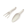 Mały zestaw narzędzi PASTEL 40-052 w kolorze beżowym zawiera łopatkę, widełki i rękawice ogrodowe. Narzędzia zostały wykonane z