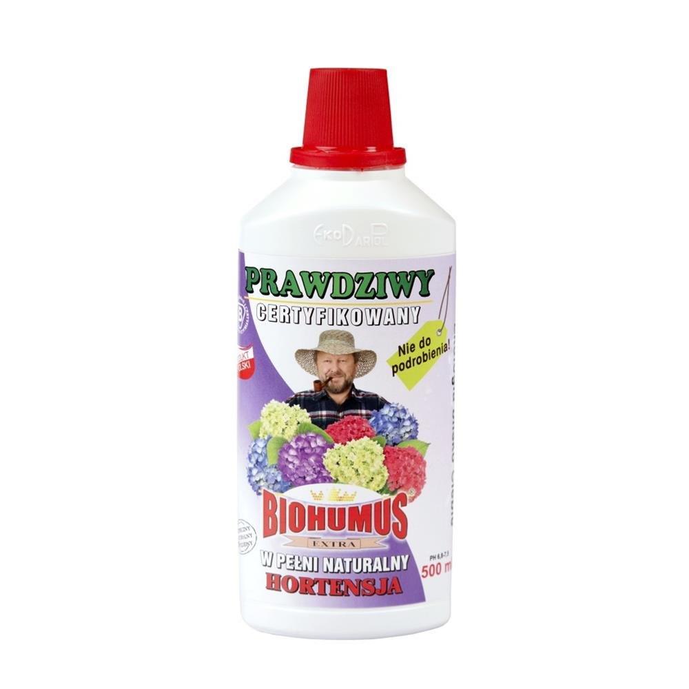 • Biohumus Extra marki EKODarpol przeznaczony do nawożenia hortensji. Wyprodukowany bez użycia chemii, na bazie naturalnego, ekologicznego obornika uszlachetnionego przez dżdżownice kalifornijskie. Dostarczany w formie płynnej.