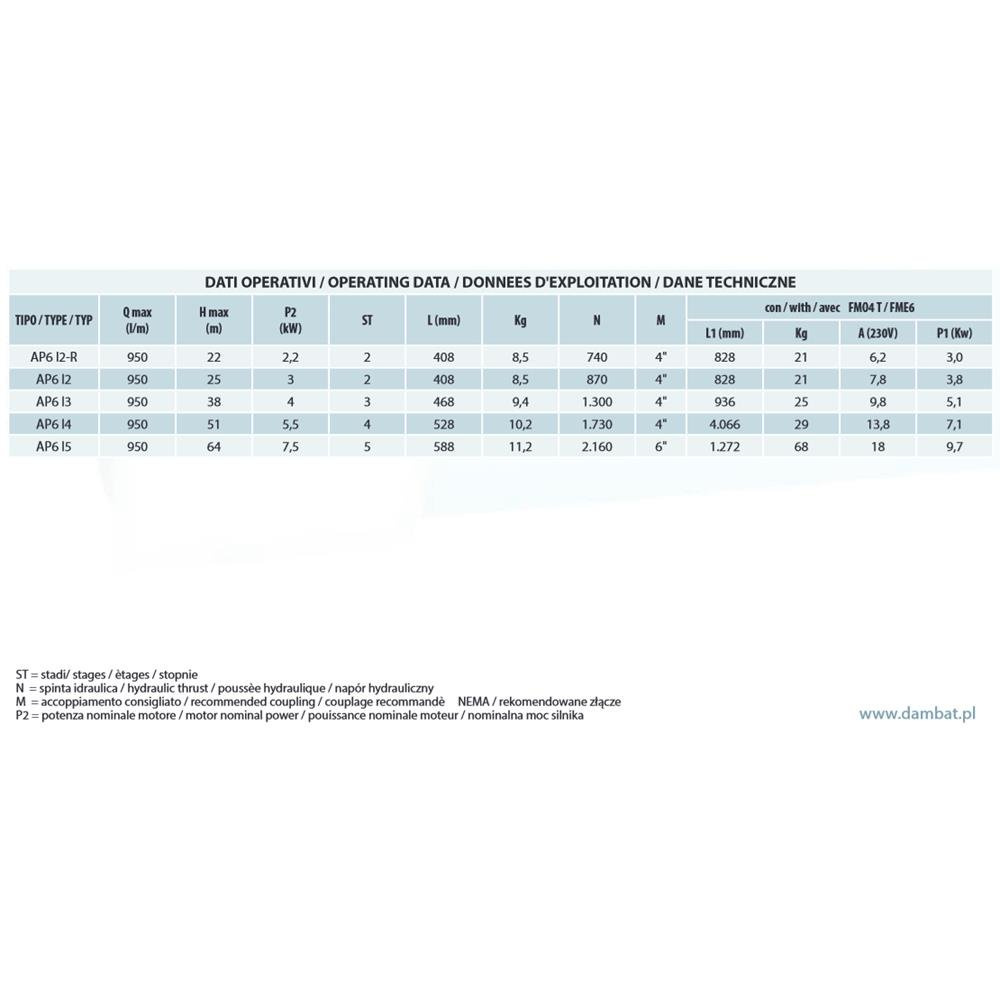 Pompy głębinowe wykorzystywane są w najróżniejszych systemach nawadniających oraz służą do wydobywania wody ze studni głębinowych. Pompy z serii AP6 stworzone zostały z przeznaczeniem do 6 calowych odwiertów. Charakteryzuje je wysoka jakość wykonania oraz niezawodna konstrukcja opracowana przez Włoskich inżynierów, dzięki czemu pozwala na wieloletnie bezawaryjne użytkowanie.