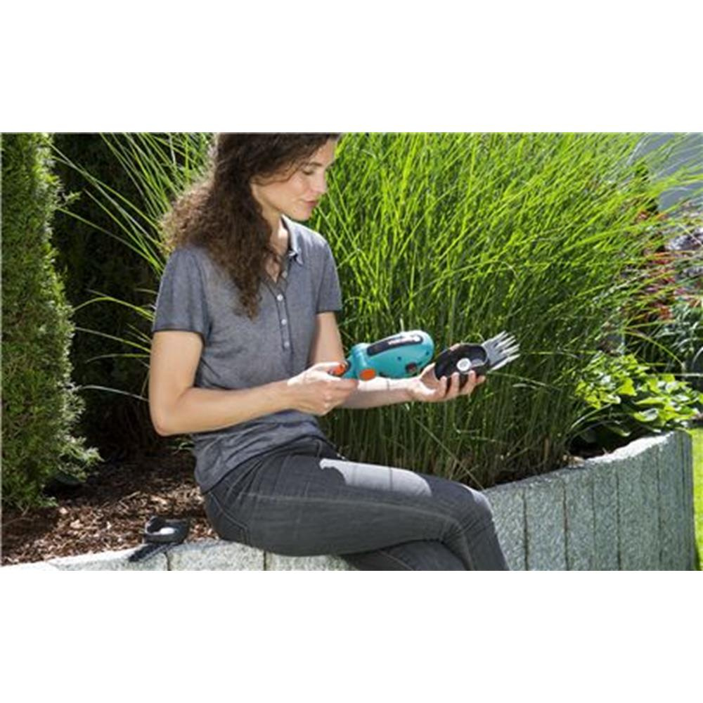 wynosi 3Ah, co pozwoli na 80 min pracy. Szerokość robocza nożyc to 8cm. Nożyce w zestawie zawierają teleskopowo regulowany
