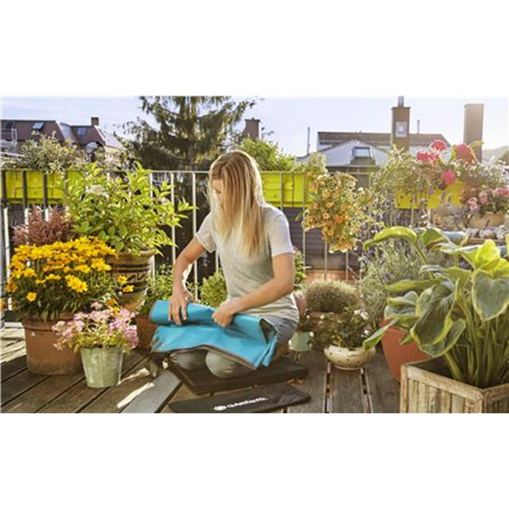 Mata do formowania krzewów marki Gardena. Jest to akcesorium, dzięki któremu utrzymasz balkon lub taras w czystości podczas przycinania, formowania krzewów. Wykonana została z materiału, który nie wchłania wilgoci, jest niezwykle łatwa w czyszczeniu a po użyciu możemy ją złożyć w małą kostkę.