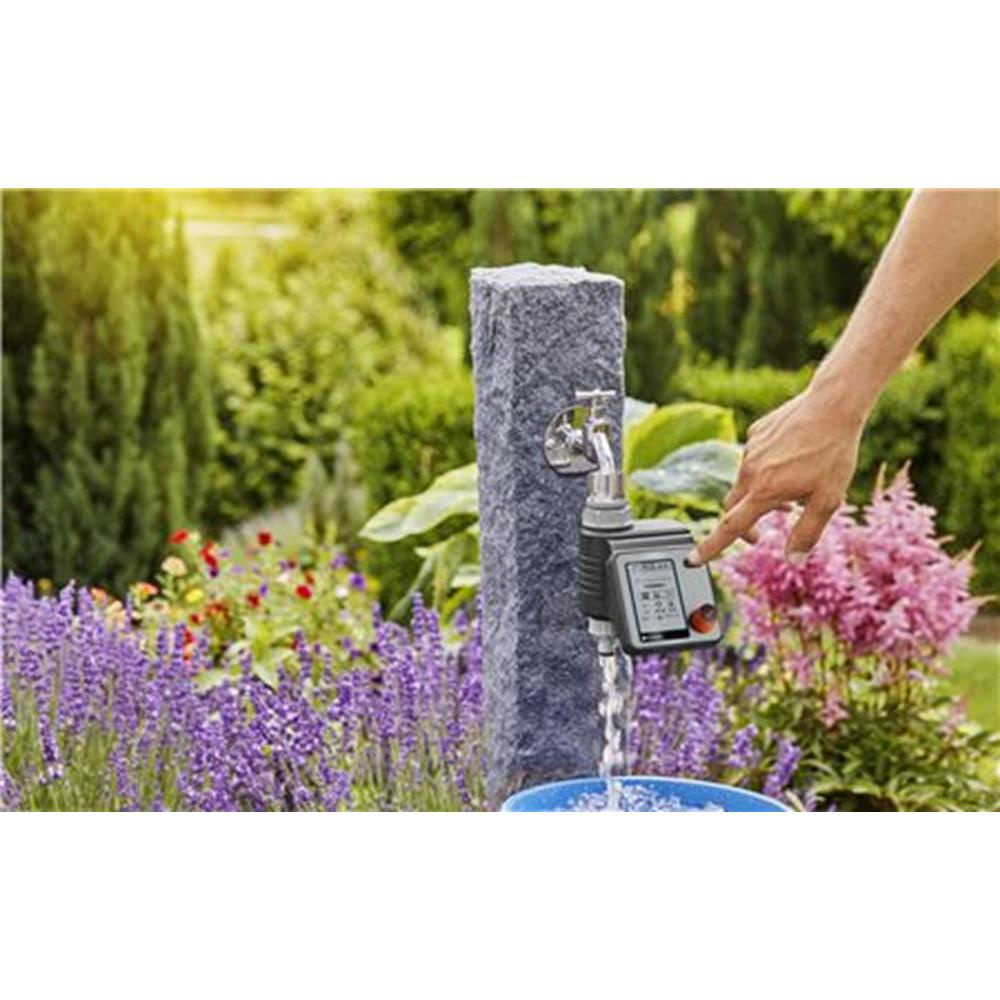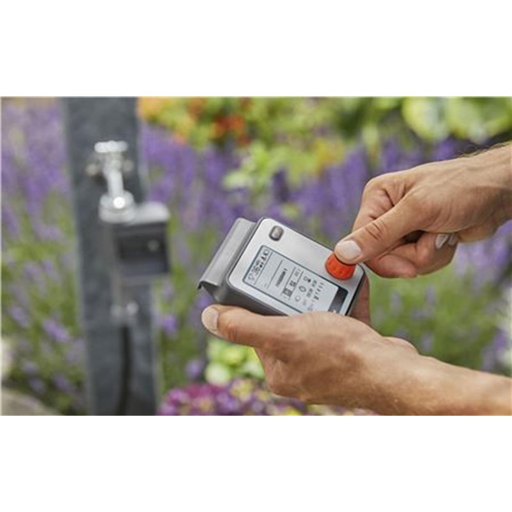 Sterownik nawadniania Gardena Master, który pozwala na elastyczne, indywidualne oraz w pełni automatyczne nawadnianie. Można zaprogramować go do sześciu niezależnych, różnych harmonogramów. Użytkownik może przygotować niezwykle elastyczne plany dostosowane do własnych upodobań. Znawcy roślin korzystają z tej opcji, aby ustawić dodatkowe podlewanie wstępne, które przygotowuje glebę i korzenie do późniejszego podlewania zasadniczego. Dzięki temu woda lepiej się wchłania, a rośliny szybciej rosną. Jednostka sterująca jest również odporna na warunki atmosferyczne i można ją łatwo odczepić od reszty urządzenia w celu wygodniejszego wyboru jej funkcji.