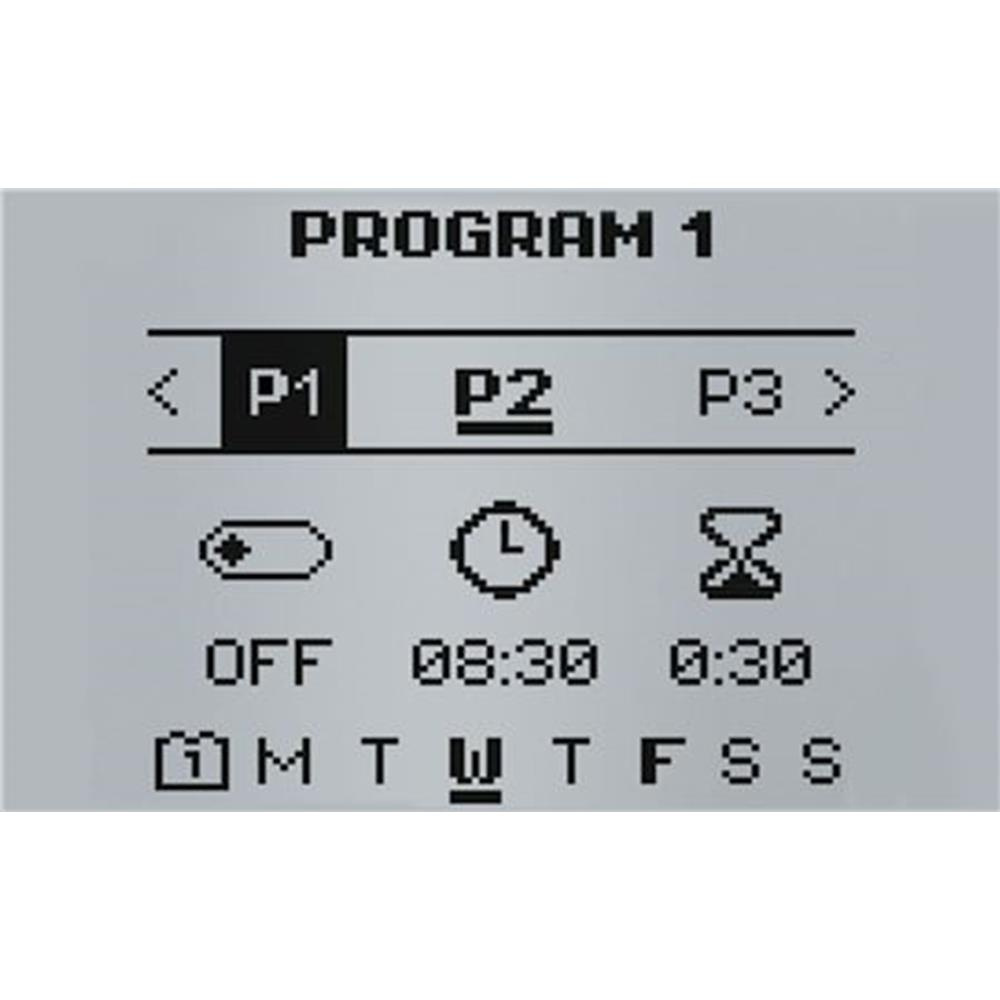 Dla systemu nawadniania można opracować trzy różne, niezależne od siebie harmonogramy, wybierając czas rozpoczęcia, czas trwania i dni nawadniania. Niezawodne działanie sterownika nawadniania to zasługa technologii Safe Stop. Jeżeli bateria jest zbyt słaba, by urządzenie mogło w pełni kontrolować proces nawadniania, nawadnianie się nie rozpocznie.