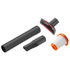 Zestaw wymiennych końcówek przeznaczonych do ręcznego odkurzacza akumulatorowego EasyClean Li marki Gardena. Pozwalają na szczególnie wydajne, proste czyszczenie. Zestaw zawiera rurę przedłużającą, ssawkę krótką, szczotkę do tapicerki i filtr HEPA.
