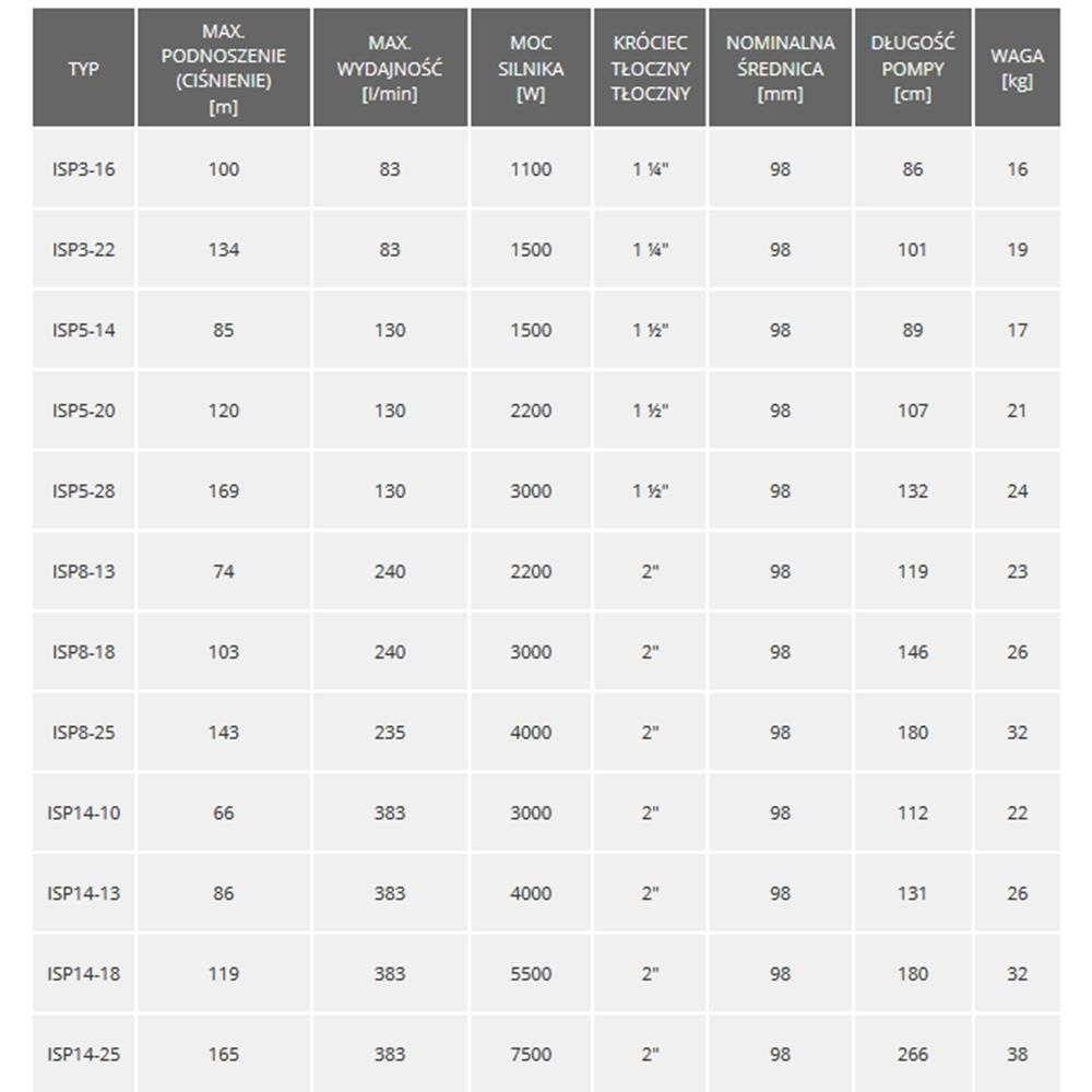 wybrany model pompy w wersji: 4ISPm o napięciu zasilania 230V~ / 50Hz z