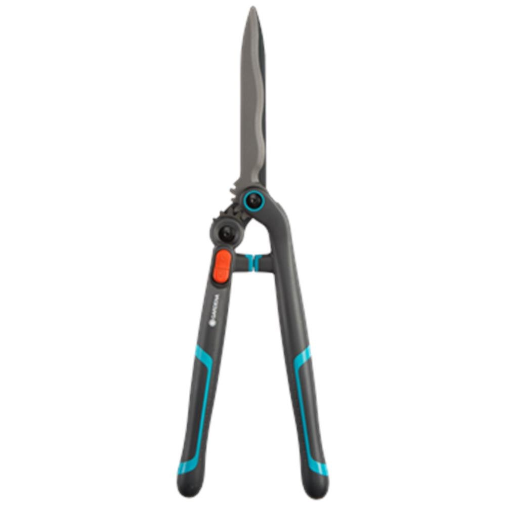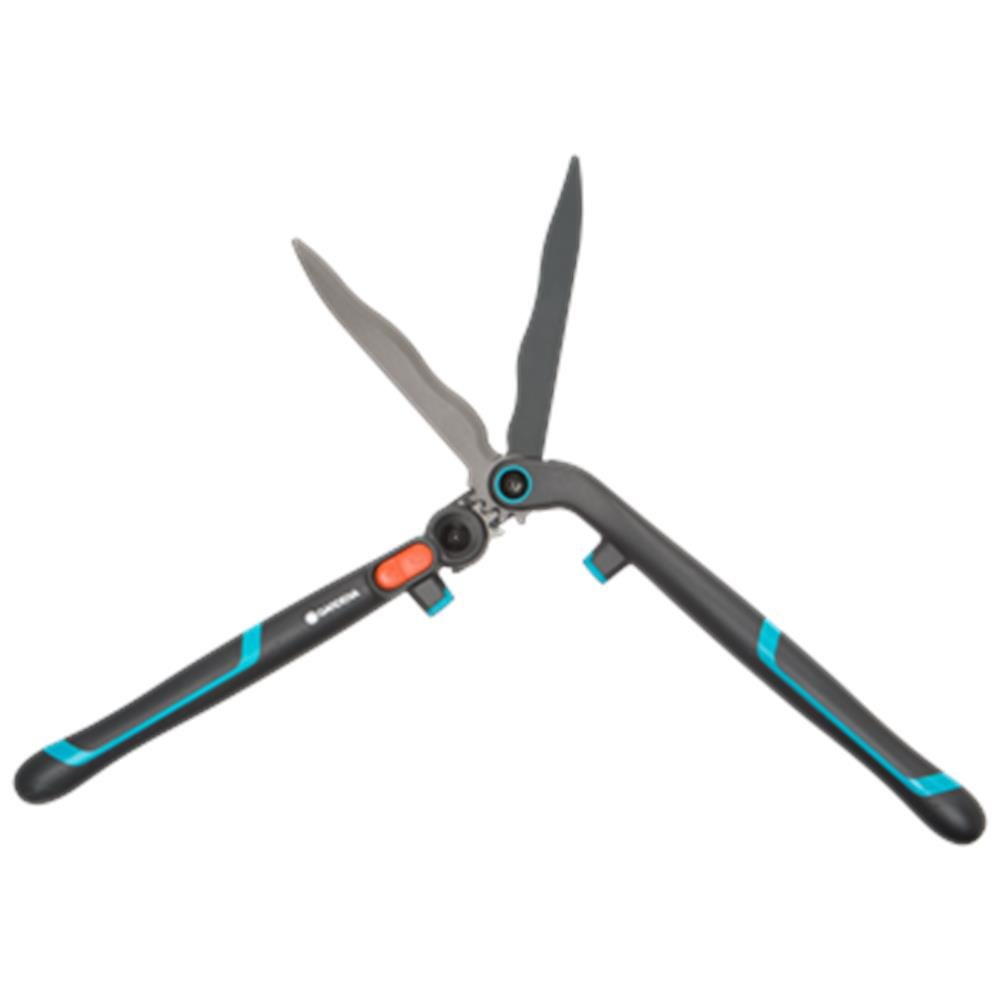 Nożyce do żywopłotu 2w1 EnergyCut marki Gardena są wszechstronne, odpowiednie do każdej pracy. Łączą w sobie możliwość szybkiego cięcia oraz pracy z dużą siłą i wydajnością. W przypadku gdy natrafimy na grubsze gałęzie wystarczy wcisnąć przycisk odblokowujący większy kąt rozwarcia. Dzięki takiej funkcji możemy zadziałać na gałąź z zdecydowanie większą siłą.