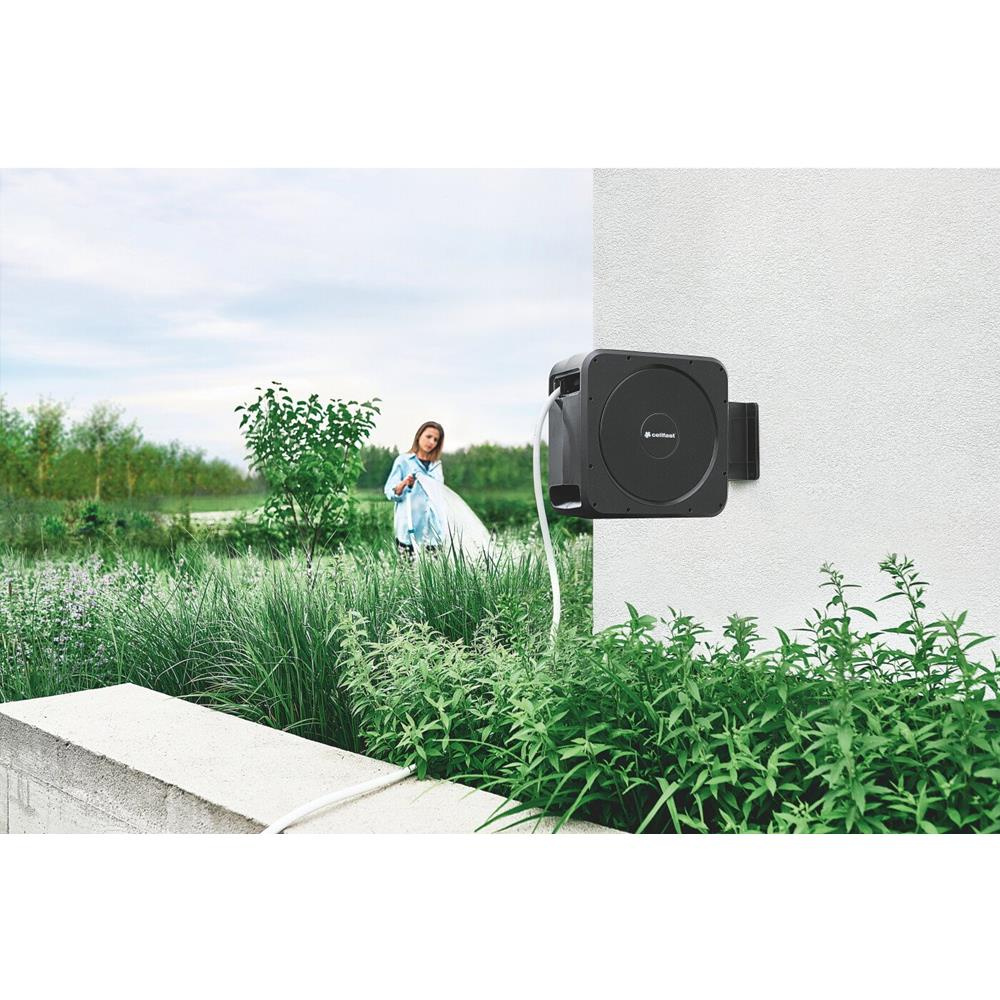 wystarczy podłączyć go do źródła wody. W zestawie otrzymujemy zwijacz, wieszak ścienny,